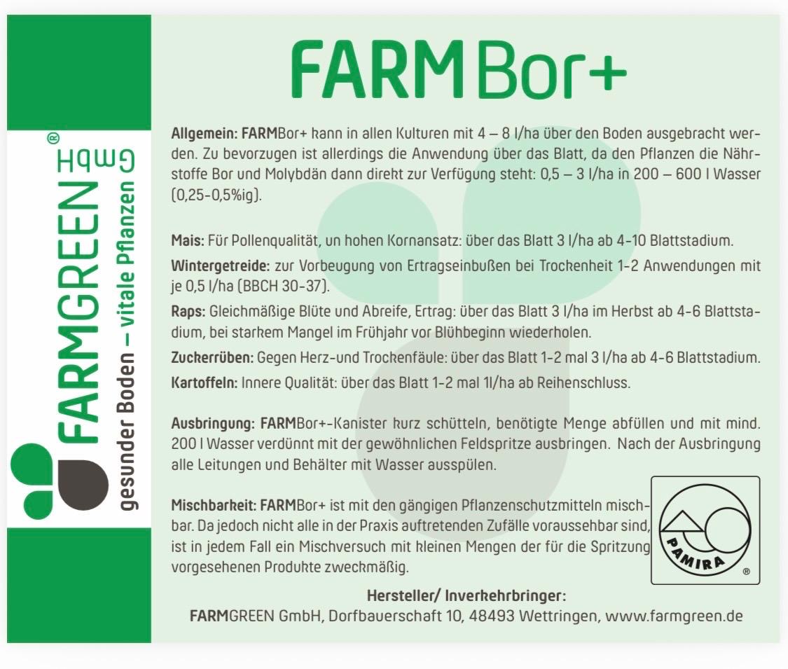 Mit FARMBor+ erweitert FARMGREEN sein Produktportfolio um ein leistungsstarkes, flüssiges Spurennährstoff-Düngemittel zur gezielten Versorgung von Kulturpflanzen mit Bor und Molybdän.